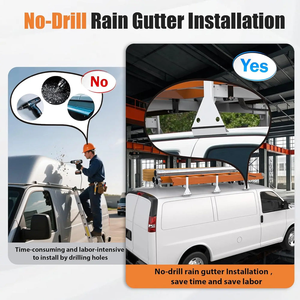 This van ladder rack is custom-engineered to fit directly on factory drip/gutter rails of Chevy Express and GMC Savana full-size vans. No modifications or adjustments required—just a secure and stable fit out of the box.