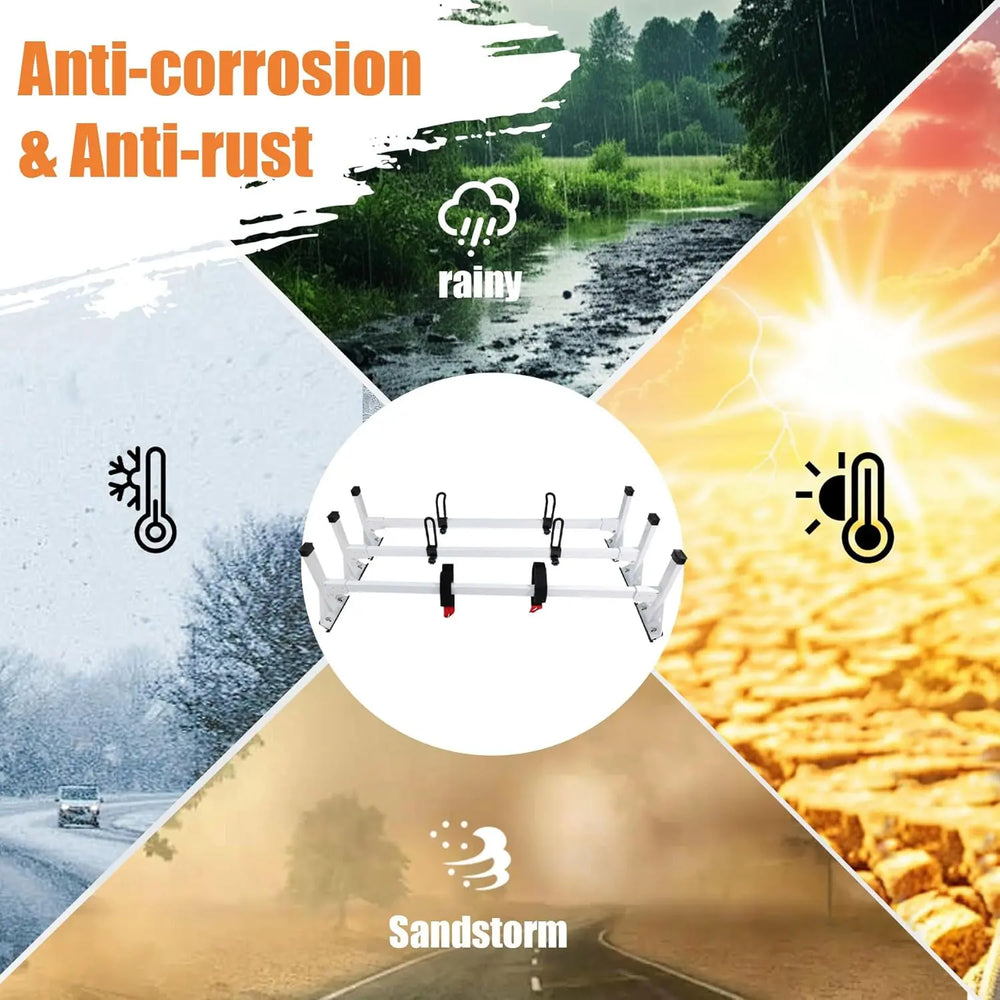 Constructed from high-strength alloy steel and finished with a white powder coating, this rack resists rust, corrosion, and deformation. Each of the 3 bars supports at least 250 lbs, giving you a total load capacity of 800 lbs for safe and heavy-duty hauling.