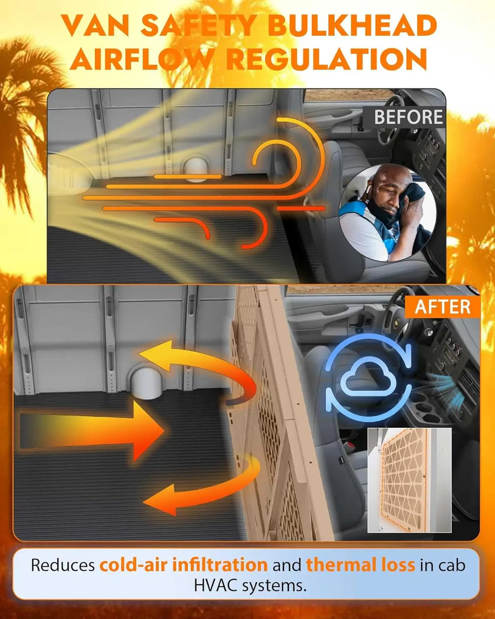Visibility & Insulation: The transparent acrylic window board on the bulkhead mesh screen allows the driver to observe the cargo's status directly, ensuring safety and stability during transport. It also improves air-conditioning efficiency and prevents cold or hot air from entering the interior of the compartment.