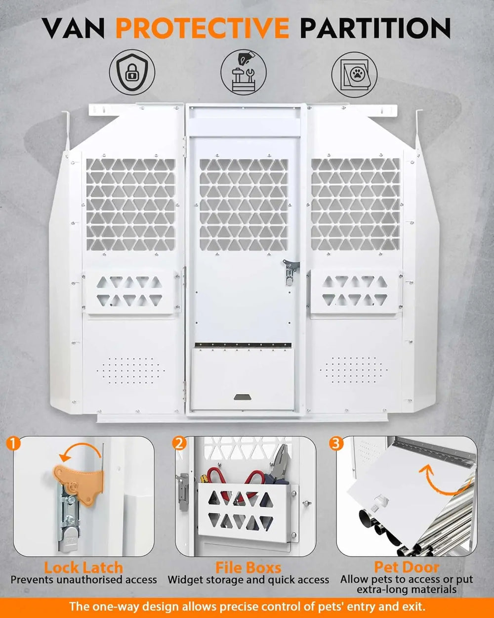 Lock Latch: The Chevy van partition comes with a lock latch that effectively prevents goods from being illegally opened or stolen during transit. This feature is extremely important for transporting high-value items, enhancing the safety and reliability of cargo transportation.