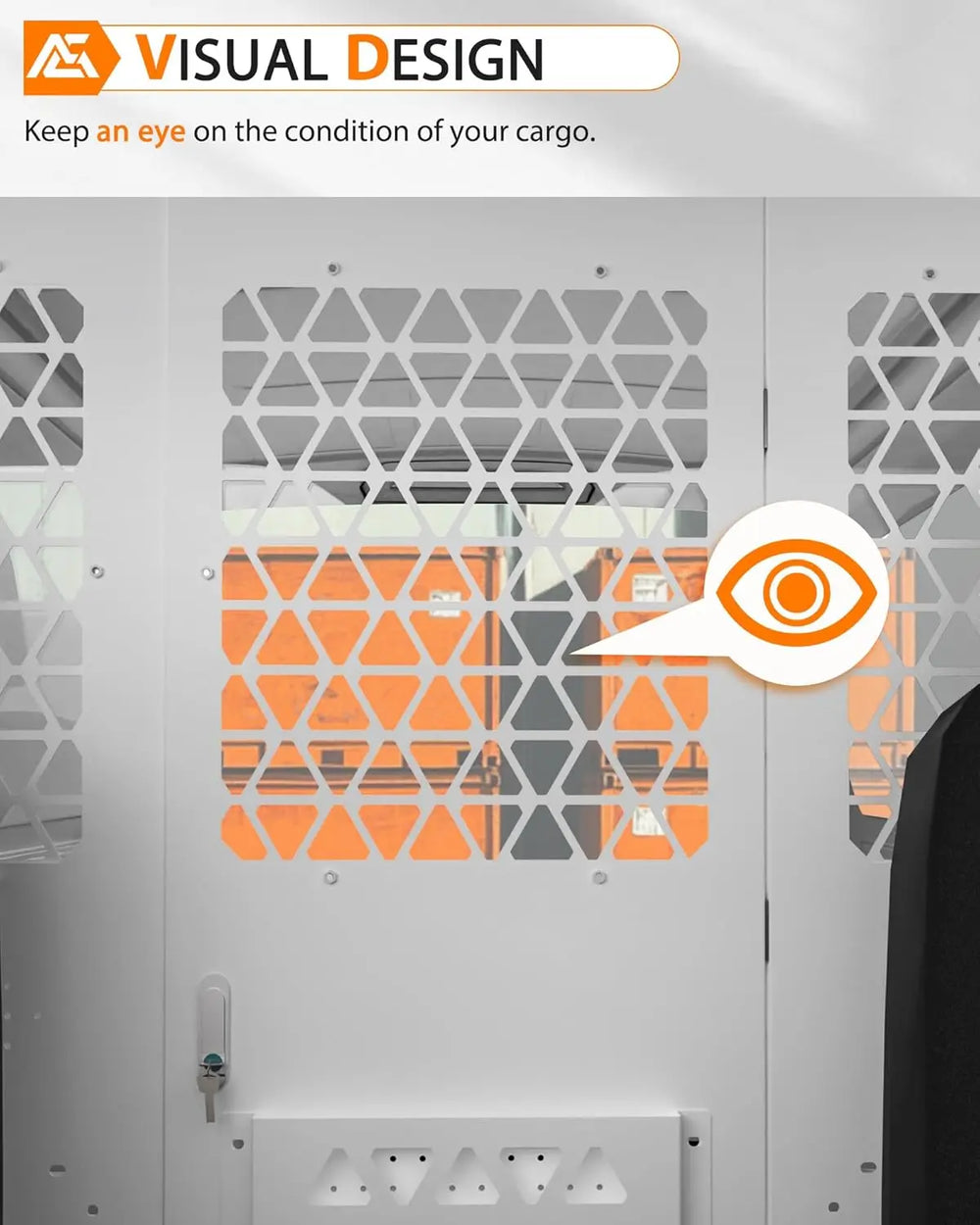 Features transparent acrylic windows on a mesh screen—so drivers can monitor cargo at a glance. Also helps to stabilize interior temperature, improving A/C efficiency and comfort in the cab.