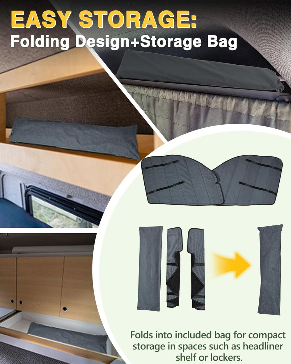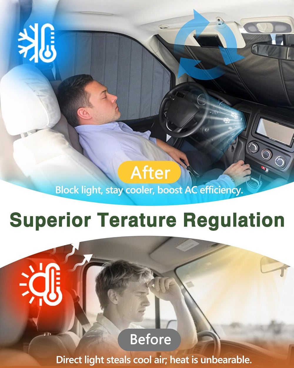 Built with automotive-grade multilayer insulation, these covers block UV50+ rays, helping keep your cabin cool in summer and warm in winter—ideal for long-term camping and van life.