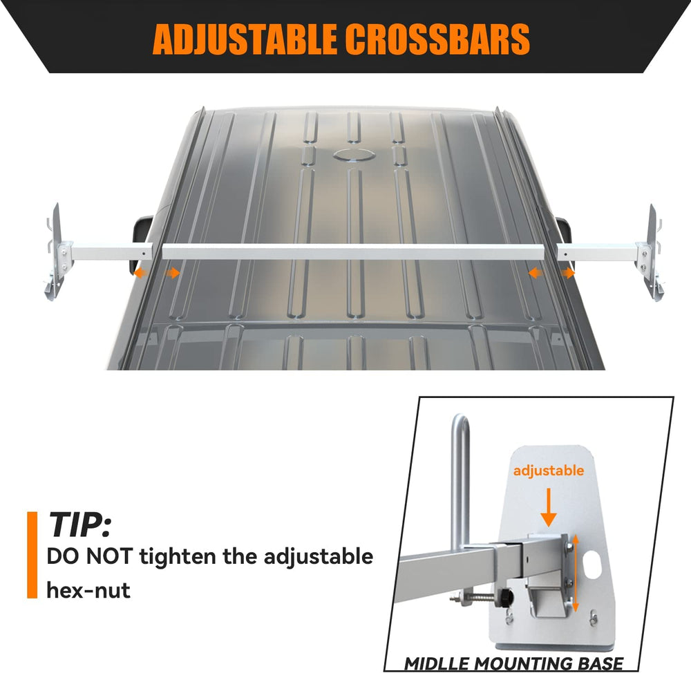 3 Crossbars Van Roof Ladder Racks for Chevy Express, Ford E-series, GMC Savana - MELIPRON