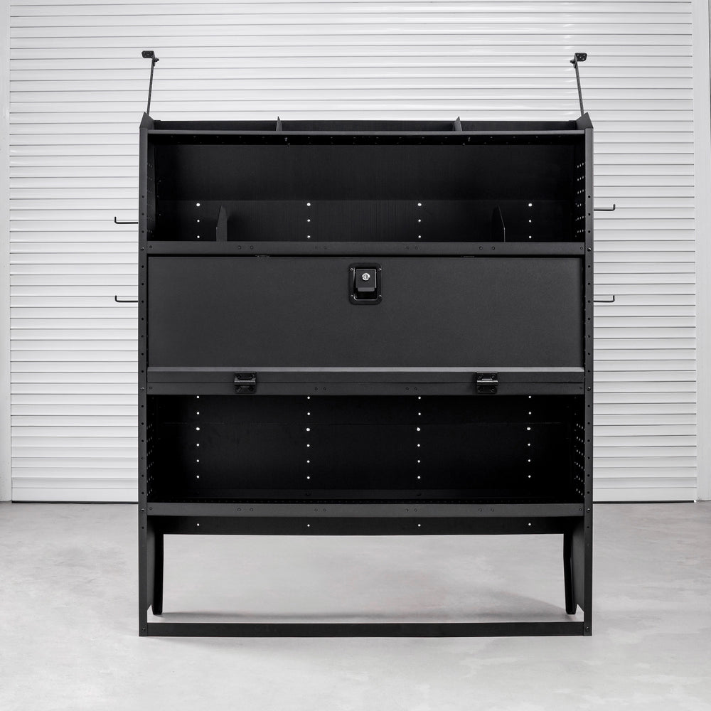 • MODULAR LAYOUT WITH HOOKS: Adjustable shelves can be configured fit small parts, tool bins, power tools, hoses, and equipment—ideal for electricians, plumbers, and HVAC techs who need customizable storage in their van