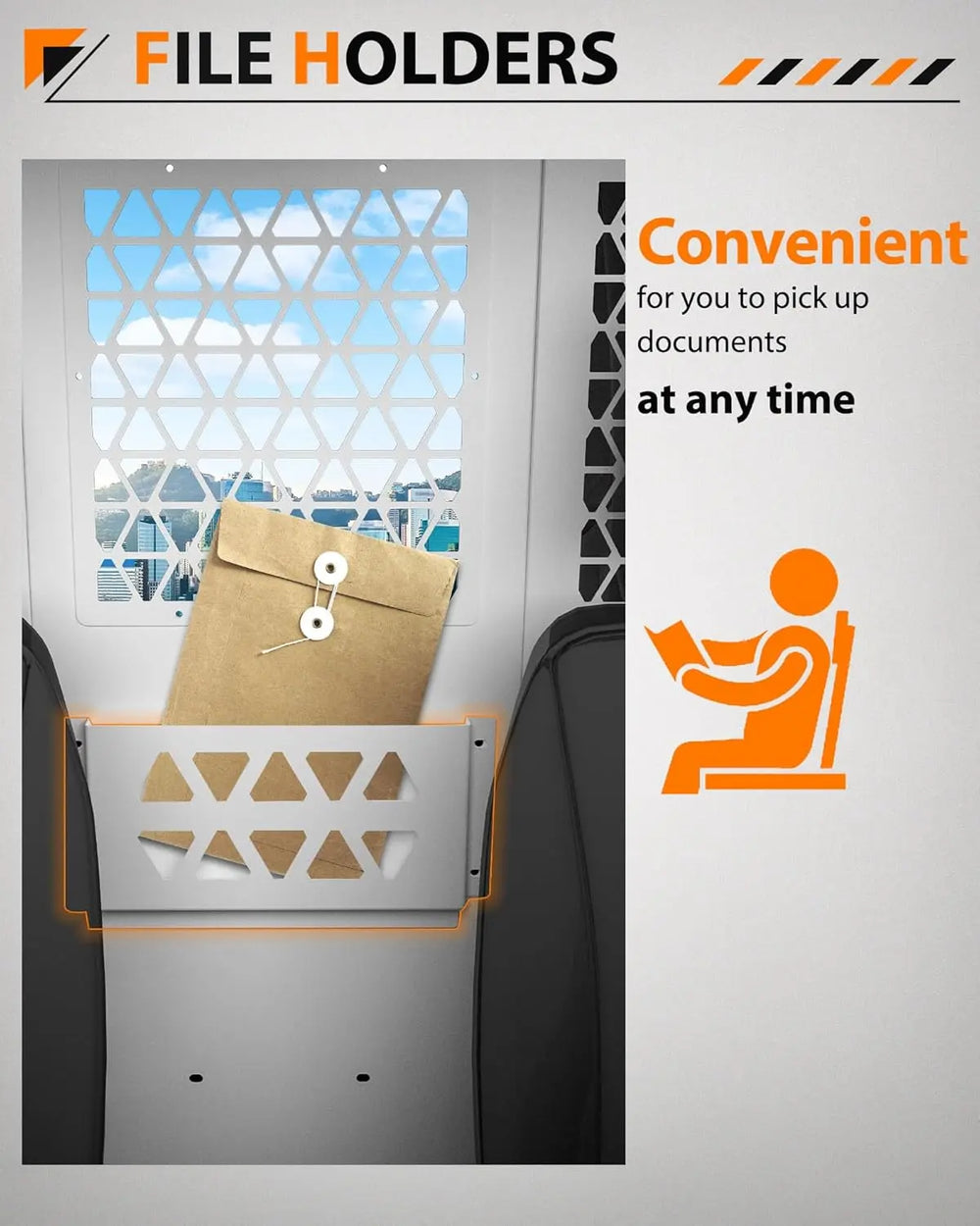 • Safety Insurance: Van bulkhead is made of heavy-duty gauge steel with exceptional strength and resistance to impact, fire, and corrosion. Effectively prevent the cargo from being shifted during transport due to sharp braking, turning or bumping of vehicles, and reduce the mutual collision of goods, so as to protect the safety of goods